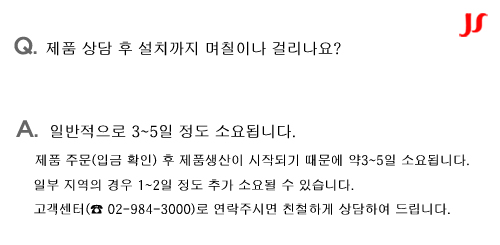 Á¦Ç° »ó´ã ÈÄ ¼³Ä¡±îÁö ¸çÄ¥À̳ª °É¸®³ª¿ä?